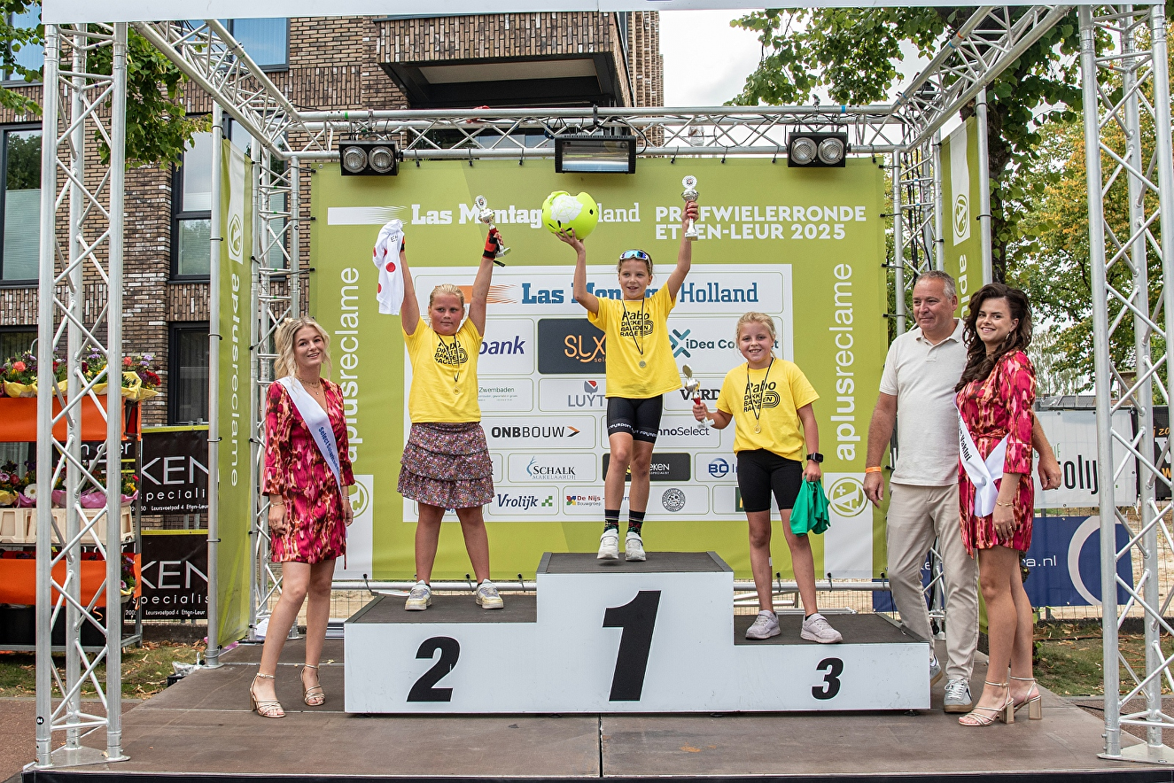 Winnaar bij de meisjes : 1 Anaïs Heijnen, 2 Luus van Mook, 3 Lola L'Abee